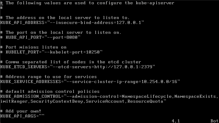 Make sure the file /etc/kubernetes/apiserver looks like this: